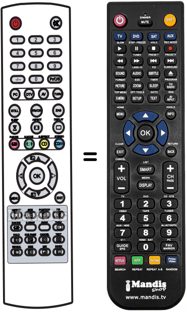 Télécommande qui remplace celle d'origine car elle possède les mêmes fonctions.