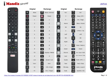 Un document est inclus pour vous aider à utiliser facilement la nouvelle télécommande, en indiquant la correspondance des boutons.