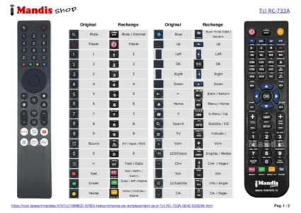 Cette télécommande remplace entièrement votre RC-733A (G0401000294) et offre toutes les fonctions de l'originale.