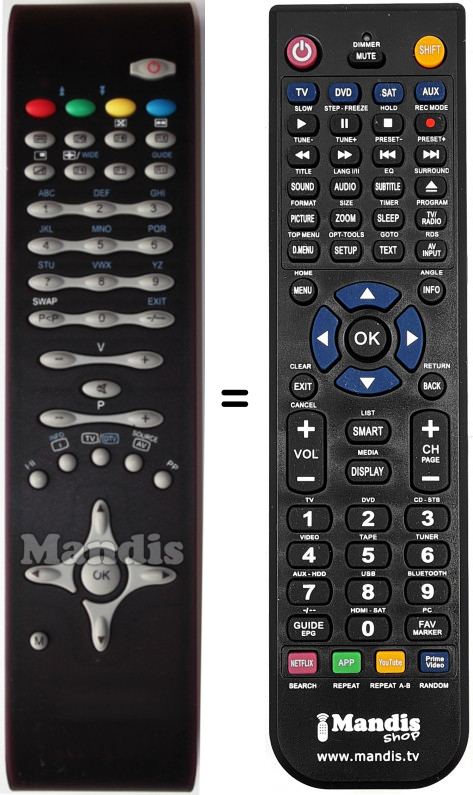 Il ne s'agit pas d'une télécommande universelle mais d'une télécommande qui remplace celle d'origine.