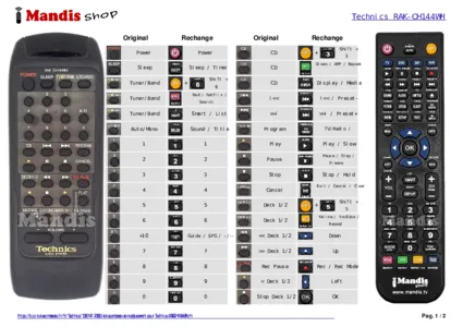 Télécommande pour Technics RAK-CH144WH
