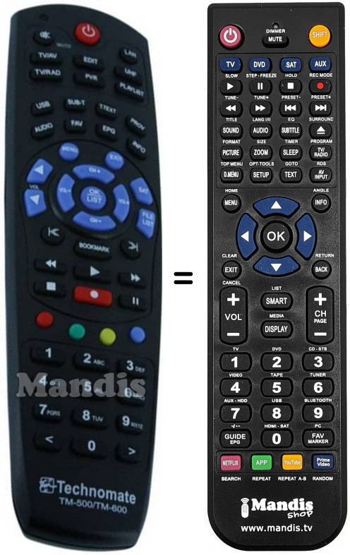 Télécommande qui remplace celle d'origine car elle possède les mêmes fonctions.
