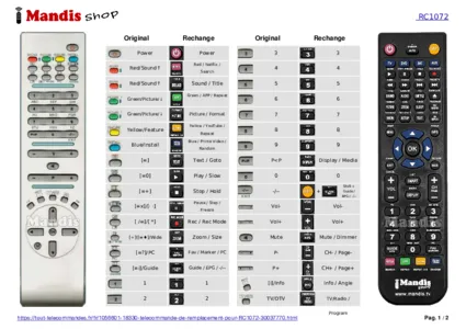 Un document est inclus pour vous aider à utiliser facilement la nouvelle télécommande, en indiquant la correspondance des boutons.