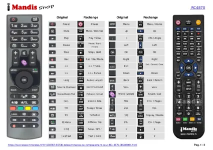 Un document est inclus pour vous aider à utiliser facilement la nouvelle télécommande, en indiquant la correspondance des boutons.