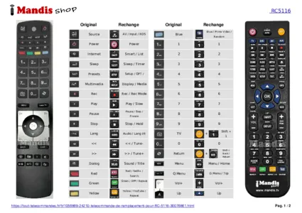 Un document est inclus pour vous aider à utiliser facilement la nouvelle télécommande, en indiquant la correspondance des boutons.