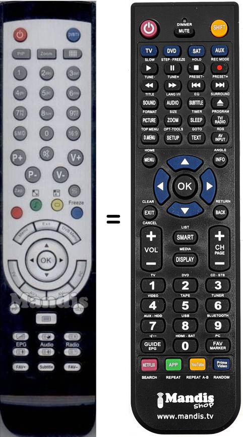 Télécommande qui remplace celle d'origine car elle possède les mêmes fonctions.