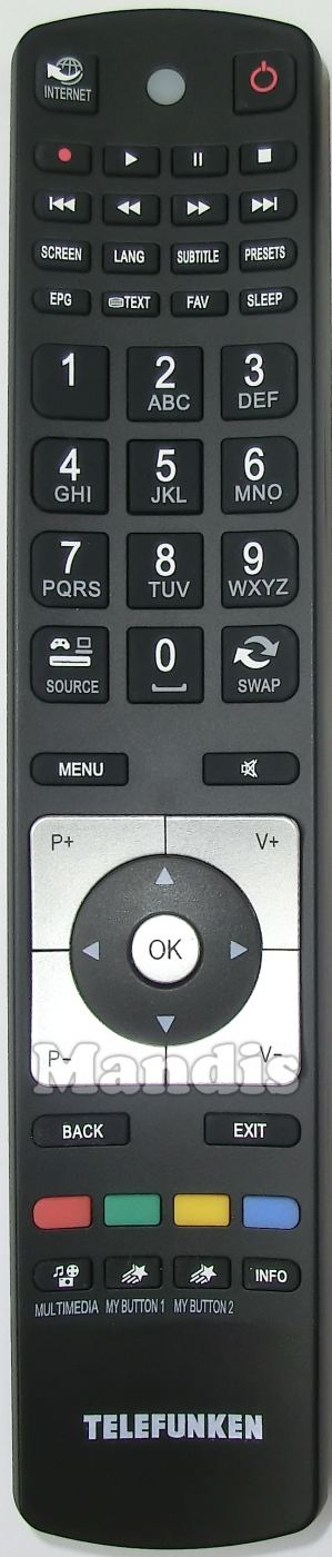 Télécommande d'origine RC5116 (23109841) pour téléviseurs de la marque Telefunken. Il s'agit d'un modèle de télécommande d'origine.