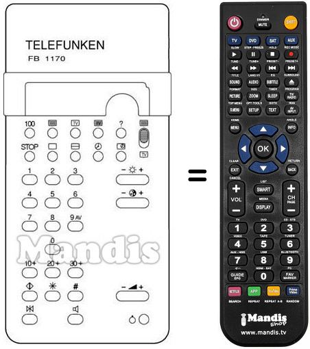 Télécommande qui remplace celle d'origine car elle possède les mêmes fonctions.