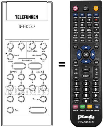 Télécommande qui remplace celle d'origine car elle possède les mêmes fonctions.