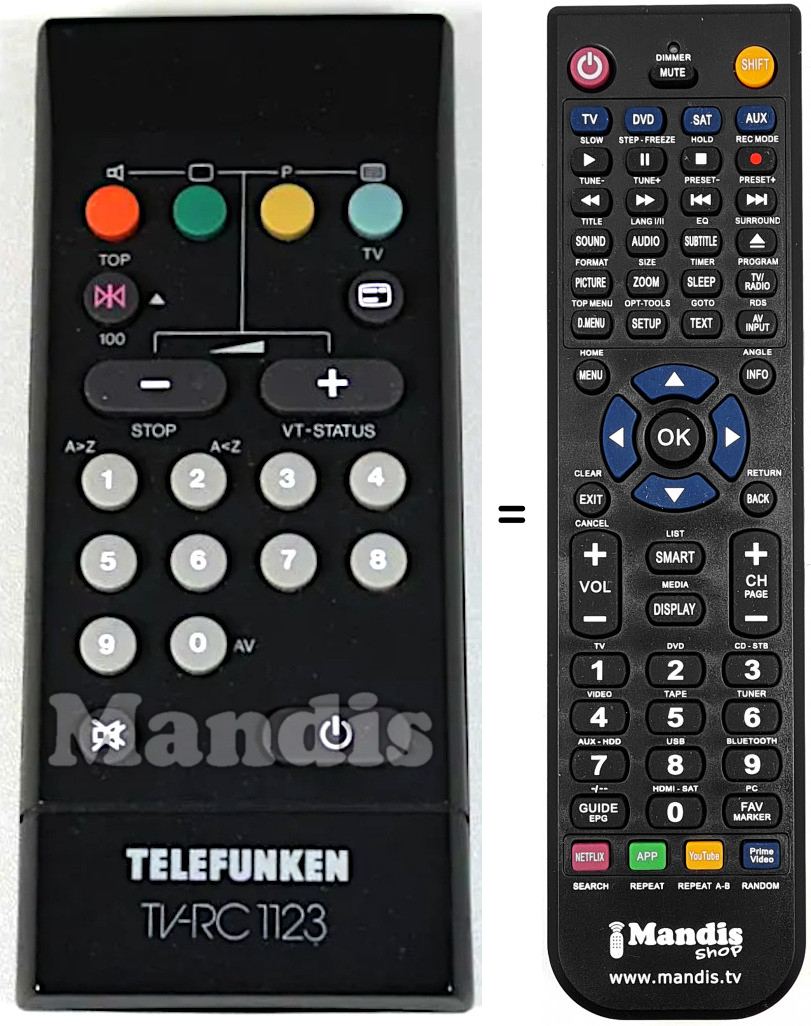 Télécommande qui remplace celle d'origine car elle possède les mêmes fonctions.