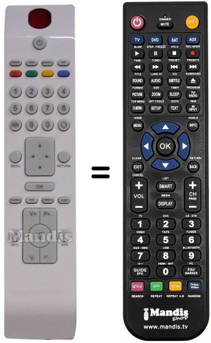 Télécommande qui remplace celle d'origine car elle possède les mêmes fonctions.