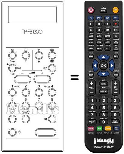 Télécommande qui remplace celle d'origine car elle possède les mêmes fonctions.