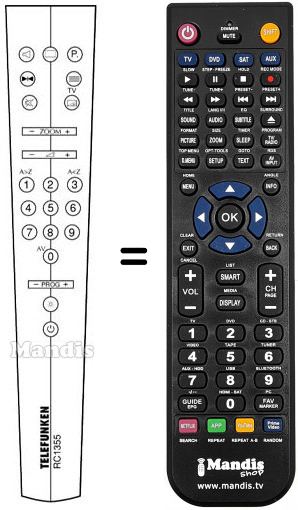 Télécommande qui remplace celle d'origine car elle possède les mêmes fonctions.