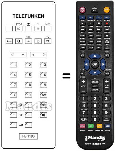 Télécommande qui remplace celle d'origine car elle possède les mêmes fonctions.