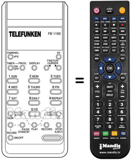 Télécommande qui remplace celle d'origine car elle possède les mêmes fonctions.