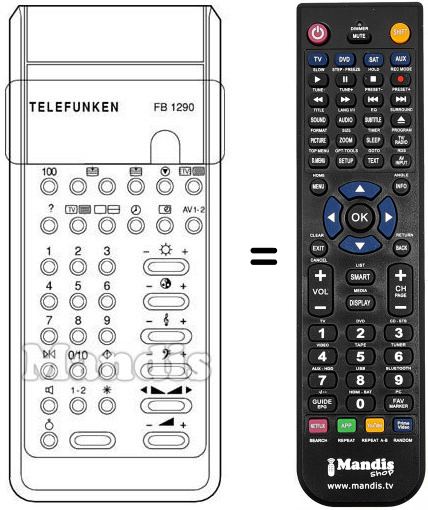 Télécommande qui remplace celle d'origine car elle possède les mêmes fonctions.