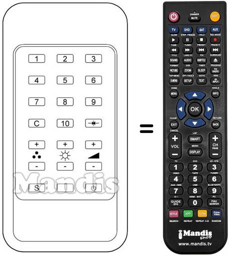 Télécommande qui remplace celle d'origine car elle possède les mêmes fonctions.