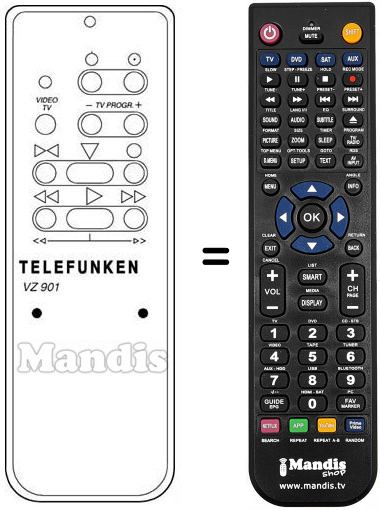 Télécommande qui remplace celle d'origine car elle possède les mêmes fonctions.