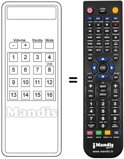 Télécommande qui remplace celle d'origine car elle possède les mêmes fonctions.