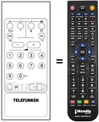 Télécommande qui remplace celle d'origine car elle possède les mêmes fonctions.