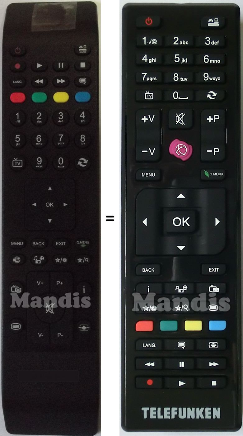 Télécommandes équivalentes qui remplacent la télécommande TELEFUNKEN 23255985 (RC4875) et possèdent exactement les mêmes fonctions :