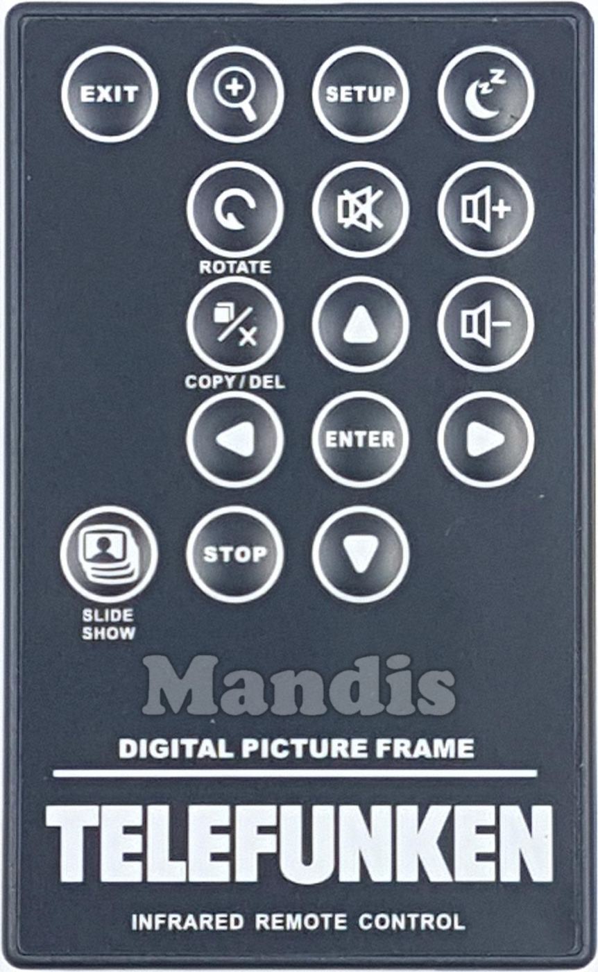 Télécommandes équivalentes qui remplacent la télécommande TELEFUNKEN Digital Picture Frame (DPF9321) et possèdent exactement les mêmes fonctions :