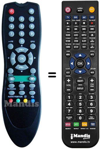 Télécommande qui remplace celle d'origine car elle possède les mêmes fonctions.