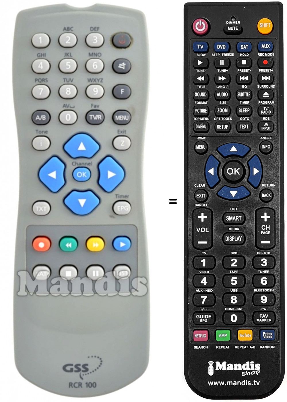 Télécommande qui remplace celle d'origine car elle possède les mêmes fonctions.