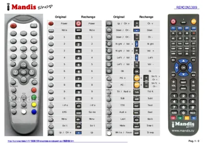 Un document est inclus pour vous aider à utiliser facilement la nouvelle télécommande, en indiquant la correspondance des boutons.
