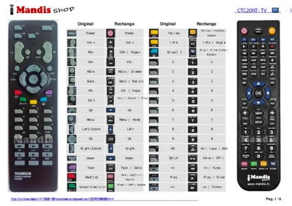 Un document est inclus pour vous aider à utiliser facilement la nouvelle télécommande, en indiquant la correspondance des boutons.