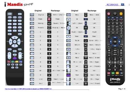 Un document est inclus pour vous aider à utiliser facilement la nouvelle télécommande, en indiquant la correspondance des boutons.