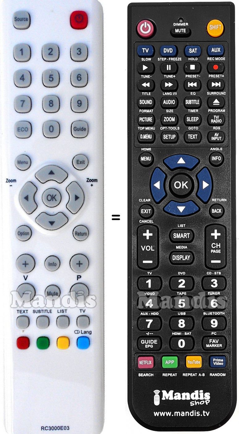 Télécommande qui remplace la télécommande d'origine RC3000E03 car elle possède les mêmes fonctions.