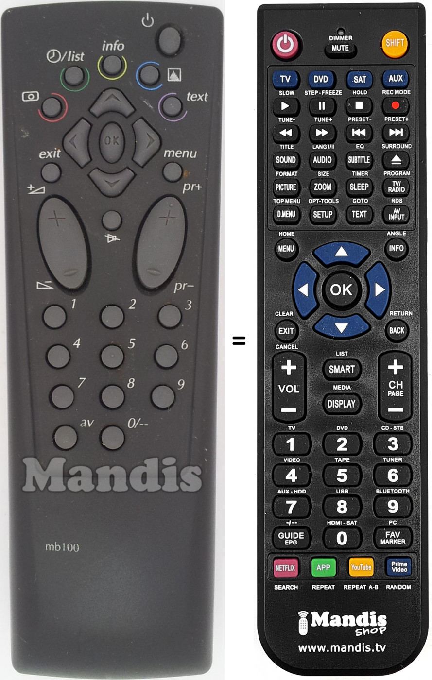 Télécommande qui remplace celle d'origine car elle possède les mêmes fonctions.