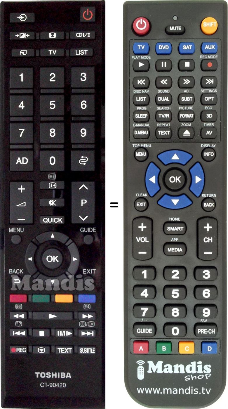 Accueil > Marques > Télécommandes Toshiba > Télécommande pour TOSHIBA CT-90420 (75029499)