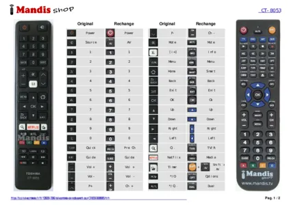 Accueil > Marques > Télécommandes Toshiba > Télécommande pour TOSHIBA CT-8053 (30089365)