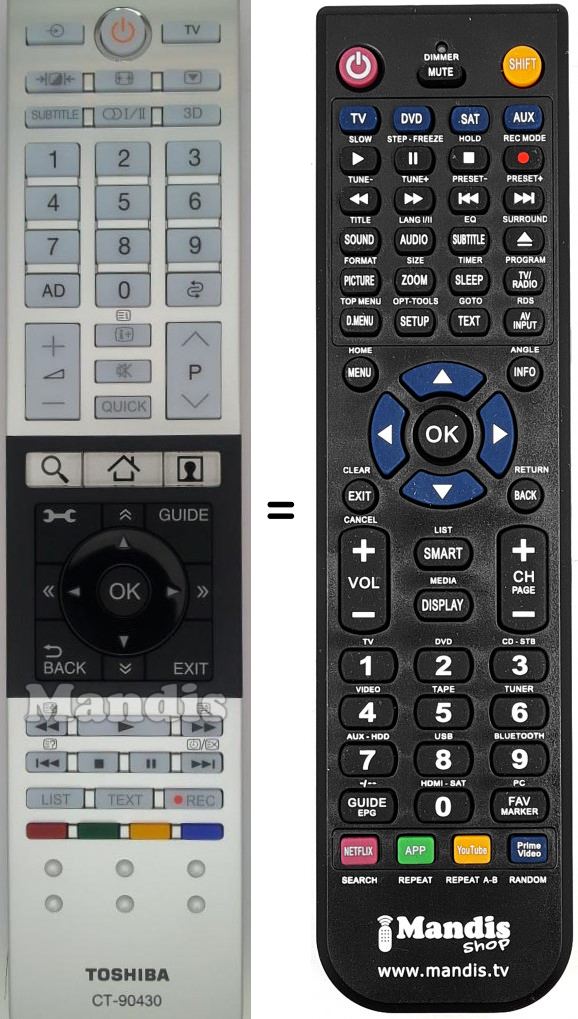 Télécommande qui remplace celle d'origine car elle possède les mêmes fonctions.