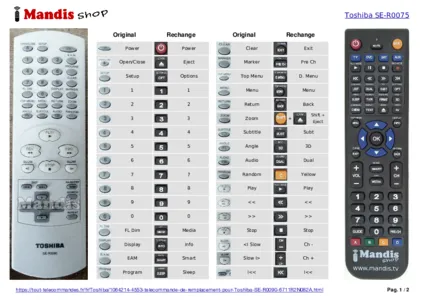 Un document est inclus pour vous aider à utiliser facilement la nouvelle télécommande, en indiquant la correspondance des boutons.