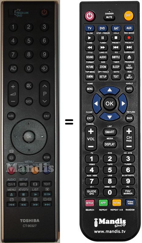 Télécommande qui remplace la télécommande d'origine CT-90327 (75015476) car elle possède les mêmes fonctions.