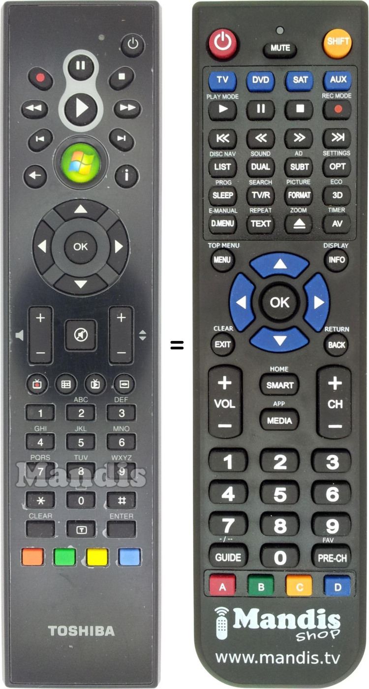 Télécommande équivalente Toshiba CT-8529Disponible en stock27,50 € (TVA incluse)
