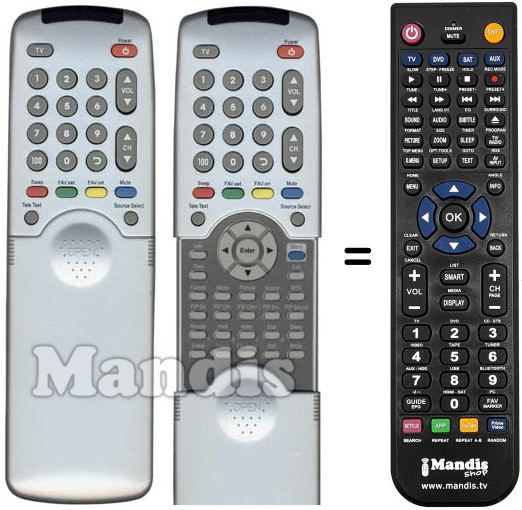 Télécommande qui remplace celle d'origine car elle possède les mêmes fonctions.