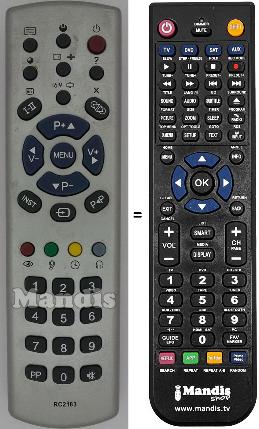 Télécommande qui remplace celle d'origine car elle possède les mêmes fonctions.