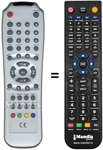 Télécommande qui remplace celle d'origine car elle possède les mêmes fonctions.
