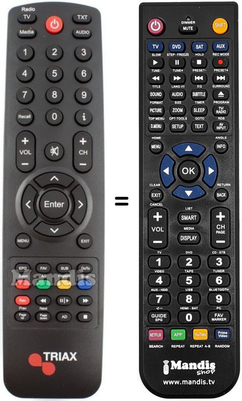 Télécommande qui remplace celle d'origine car elle possède les mêmes fonctions.