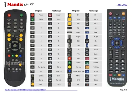Cette télécommande remplace entièrement votre HD-2000 et offre toutes les fonctions de l'originale.