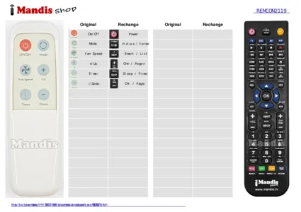 Cette télécommande remplace entièrement votre REMCON2119 et offre toutes les fonctions de l'originale.
