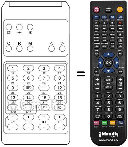 Télécommande qui remplace celle d'origine car elle possède les mêmes fonctions.