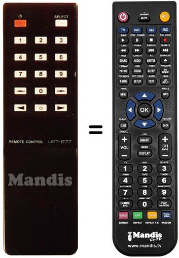Télécommande qui remplace celle d'origine car elle possède les mêmes fonctions.