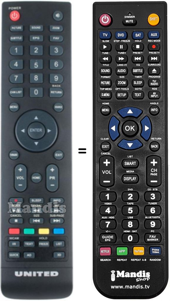 Télécommande qui remplace celle d'origine car elle possède les mêmes fonctions.
