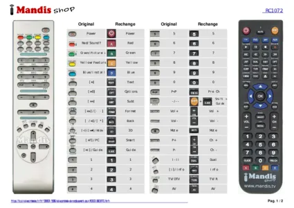 Un document est inclus pour vous aider à utiliser facilement la nouvelle télécommande, en indiquant la correspondance des boutons.