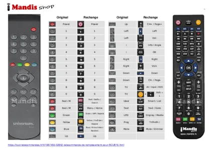 Un document est inclus pour vous aider à utiliser facilement la nouvelle télécommande, en indiquant la correspondance des boutons.